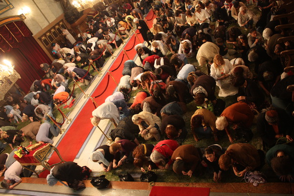 У наставку Свете Литургије, око 10:30, служена је вечерња служба, као спомен на то што су се Свети апостоли разишли одмах по свету да проповедају. Током ове службе, врше се коленопреклоне молитве, тзв. велике метаније, приклањањем колена и лица ка земљи. Обичај плетења венчића на овај празник везан је управо за ове молитве, током којих се молимо за даривање Духа благодати, за исцељење душевних и телесних мука, као и да се удостојимо Царства небеског. Венчићи се плету и освећују током молитава ове вечерње службе, за здравље целе породице и наших ближњих. Венчићи се, потом, стављају крај славске иконе и ту стоје целе године. Уношењем зеленила у цркву указује се на то да се читава природа, читава творевина буди и освећује благодаћу Светога Духа, у заједништву са човеком, који је користи на своје и добро својих ближњих. Након Свете службе, Прво београдско певачко друштво је, у својим просторијама, угостило гостујући братски хор из Бањалуке, у изузетно срдачној и радосној атмосфери. Истога дана, са почетком у 20 часова, у Саборној цркви је одржан и концерт Београдских мадригалиста, под руководством диригента Александра Брујућа. Мадригалисти већ 10. пут одржавају свој традиционални духовдански концерт у Саборној цркви, овога пута и са посебним поводом – 60. рођенданом овог хора. На програму овог духовног концерта били су српски и руски композитори. Концерт је отпочео тропаром на Духове, извођена су дела Станковића, Маринковића, Д. Миладиновића, Гаванског, Чеснокова, Чајковског, Озерова, Турчањинова и савремених композитора, И. Јевтића и Д. Трбојевића. Међу солистима су наступили: Михаило Шљивић (бас), Борис Бабик (тенор), Маја Јанушић (сопран), Марија Мирчетић (сопран) и Зорана Калапиш (алт).