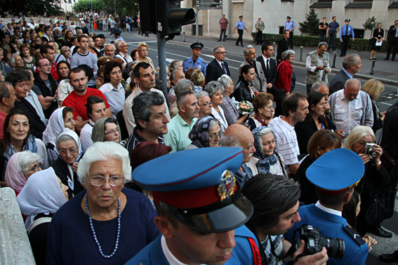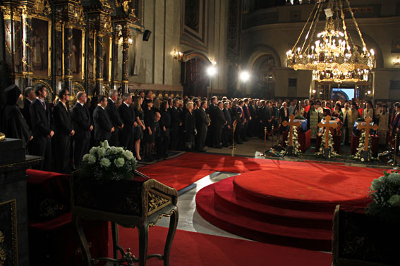 Током помена, непрекидно је пристизао бројни народ, ради одавања почасти Карађорђевићима. Читав догађај пропратио је и велики број медијских кућа, новинара и фото-репортера. Патријарх Иринеј одржао је свечану беседу о мукотрпном путу кнеза Павла и његове породице, његовом великом доприносу српској култури, као и немилој улози у претешко време, настојањима да од рата и даљих страдања спасе српски народ, који је, после Првог светског рата, остао готово без мушког становништва и претрпео ненадокнадиве губитке. Током комунистичке власти, кнезу Павлу је нанета историјска неправда, проглашен је издајником и протеран у изгнанство, након пуча, 27. марта 1941. године. Патријарх Иринеј је нагласио да је овим чином исправљена историјска неправда, како према самом кнезу Павлу, тако и према његовој породици. Међу многобројнима који су дошли да одају почаст Карађорђевићима, био је и не мали број оних који памте, из периода свога детињства, изгнанство кнеза Павла. Стојећи у реду за поклоњење, објашњавали су да је ово за њих велики дан јер су, после много деценија дочекали да се истина покаже у правом светлу и да се кнез Павле са породицом врати у земљу својих отаца. Кнез Павле, синовац краља Петра Првог, био је намесник Краљевине Југославије, након убиства краља Александра. Преминуо је 14. септембра 1976. године у Паризу. Тела кнеза Павла, кнегиње Олге и кнежевића Николе вратила су се у своју Отаџбину у јубиларној, 195. години од мученичке кончине оснивача ове владарске лозе, великог вожда српског Карађорђа Петровића, коме је свечани парастос, уз Св. Архијерејску Литургију, био служен у Саборној цркви 22. јула ове године. У петак, 5. октобра, служена је у Саборној цркви и свечана Заупокојена Архијерејска Литургија са парастосом. Литургијом је началствовао епископ аустралијско-новозеландски Иринеј, уз саслуживање епископа хвостанског Атанасија и свештенослужитеља Архиепископије београдско-карловачке. Земни остаци Карађорђевића остали су у Саборној цркви до 17 часова, када су свечано пренети на Опленац, у Задужбину владарске династије Карађорђевић. Тамо су сахрањени на Задушнице, 6. октобра 2012. године. У свечаним богослужењима саслуживао је и старешина Саборне цркве, о. Петар Лукић. Владари из династије Карађорђевић током историје су редовно у Саборној цркви присуствовали свечаним литургијама о Божићу, на Нову годину, Савиндан, Цвети и Св. Андреја Првозваног, на рођендане владара, имендане и благодарења, крунисања и миропомазања, опела, парастосе и венчања чланова владарске породице. Српским краљевима Петру Првом и Александру Првом опела су служена управо у Саборној цркви, одакле су испраћани на Опленац. Овде су дочекани и на Опленац испраћани и посмртни остаци принца Ђорђа (старијег сина краља Петра Првог), а парастоси су служени и за душе осталих чланова ове владарске породице.