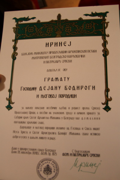 За идућу горину, Славу је преузео г. Драган Тарлаћ, такође спортиста као и овогодишњи домаћин. На крају овог светог сабрања, Патријарх Иринеј је одржао свечану беседу, о значају и смислу Св. Причешћа и литургијског сабрања уопште, о ангелским војскама, које предводи Св. Архангел Михаило, као и о разлици света видљивог, у коме ми обитавамо, и оног невидљивог очима, али духовно видљивог, којим је испуњен храм током богослужења, али и храм наше душе, ако живимо са Богом. Након тога, приређена је свечана трпеза љубави у Двору Српске патријаршије.