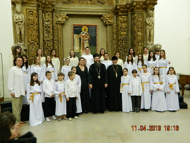 У четвртак, 11. априла 2013. године, са почетком у 18:30, Дечији хор Првог београдског певачког друштва (ПБПД), хора Саборне цркве, одржао је свој концерт у Галерији фресака у Београду. Концерту су присуствовали и: Његово Преосвештенство епископ ремезијански Андреј (Ћилерџић), протојереј-ставрофор Петар Лукић, старешина Саборне цркве и председник Првог београдског певачког друштва, родитељи и остала публика. На програму су била дела Мокрањца, Станковића, Тајчевића, Ковалевског, Макарова, празнични напеви и народне песме са Косова и из Бугарске (уз музичку пратњу Горана Кораксића на инструментима тарабука и тапан), као и неколико солиста. Диригент Дечијег хора ПБПД је Радмила Кнежевић. Дечији хор је одржао овај концерт у години великог јубилеја Првог београдског певачког друштва, 160 година постојања и рада.
