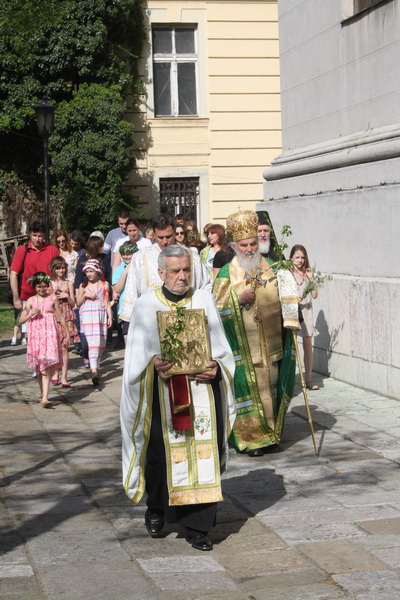 На Лазареву суботу, 27. априла 2013. године, Његова Светост патријарх српски Иринеј је прославио своју Крсну славу, служењем Св. Архијерејске Литургије у Саборној цркви, уз епископе: нишког Јована и хвостанског Атанасија, као и саслуживање свештенослужитељa Саборне цркве и Архиепископије београдско-карловачке. Певало је Прво београдско певачко друштво. Литургији су присуствовали и епископи Лаврентије и Константин. Његова Светост је одржао празничну беседу, а славски колач је пресекао епископ шабачки Лаврентије, честитавши Патријарху Иринеју Славу. Поподне је у овом храму радосно прослављена Врбица. Служио је, такође, Патријарх српски Иринеј, са братством Саборне цркве и у присуству епископа Константина и Андреја. Служби је присуствовао и велики број малишана са родитељима. Након трикратног опхода око храма, освећене су врбове гране и подељене сабраном народу.
