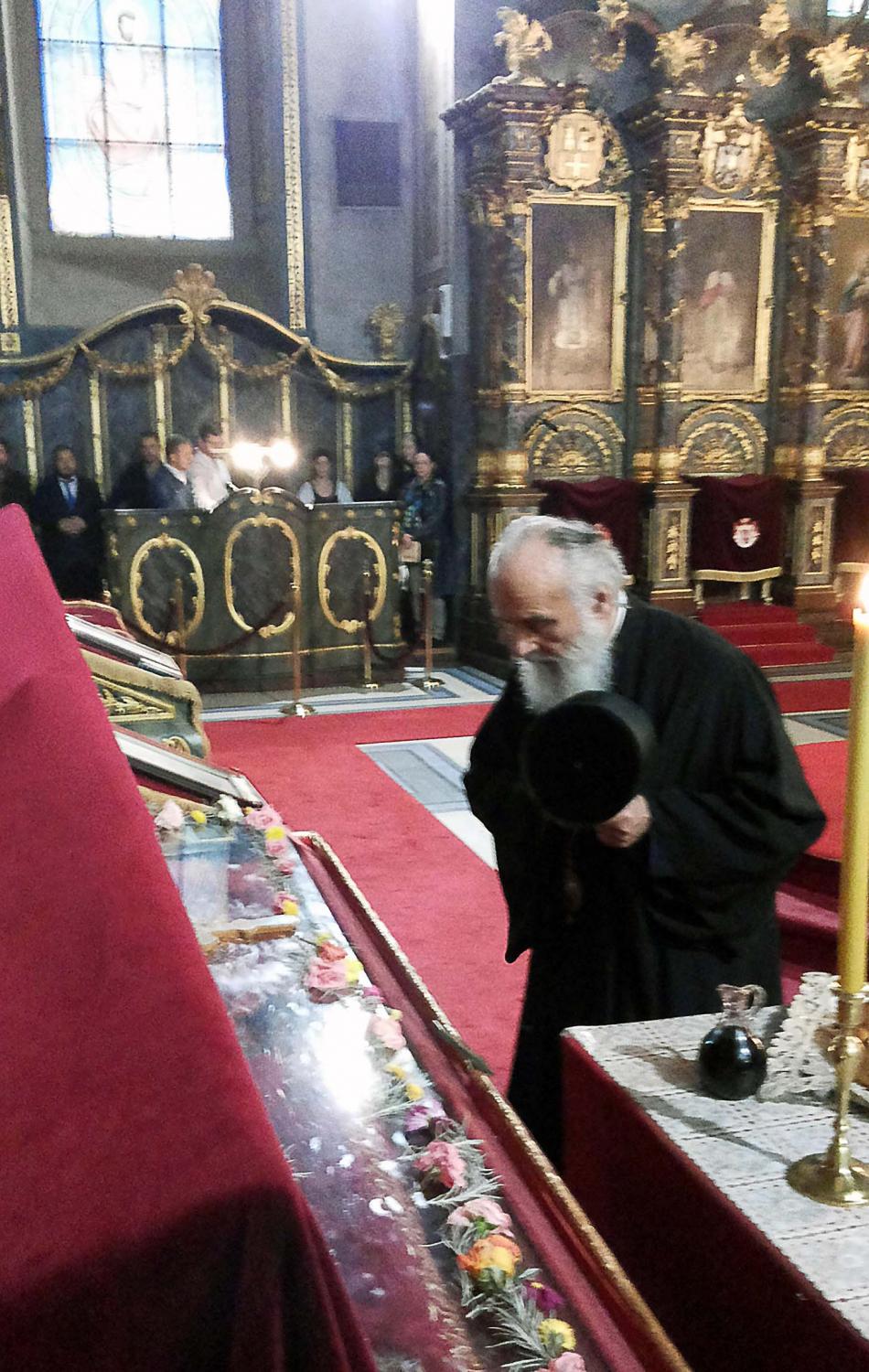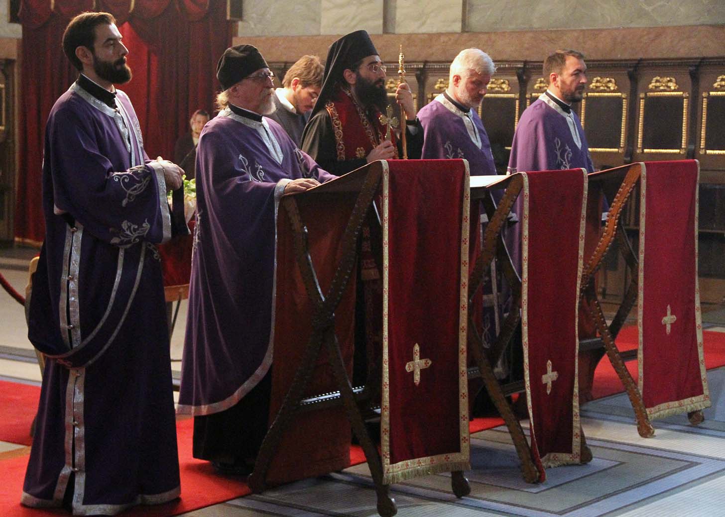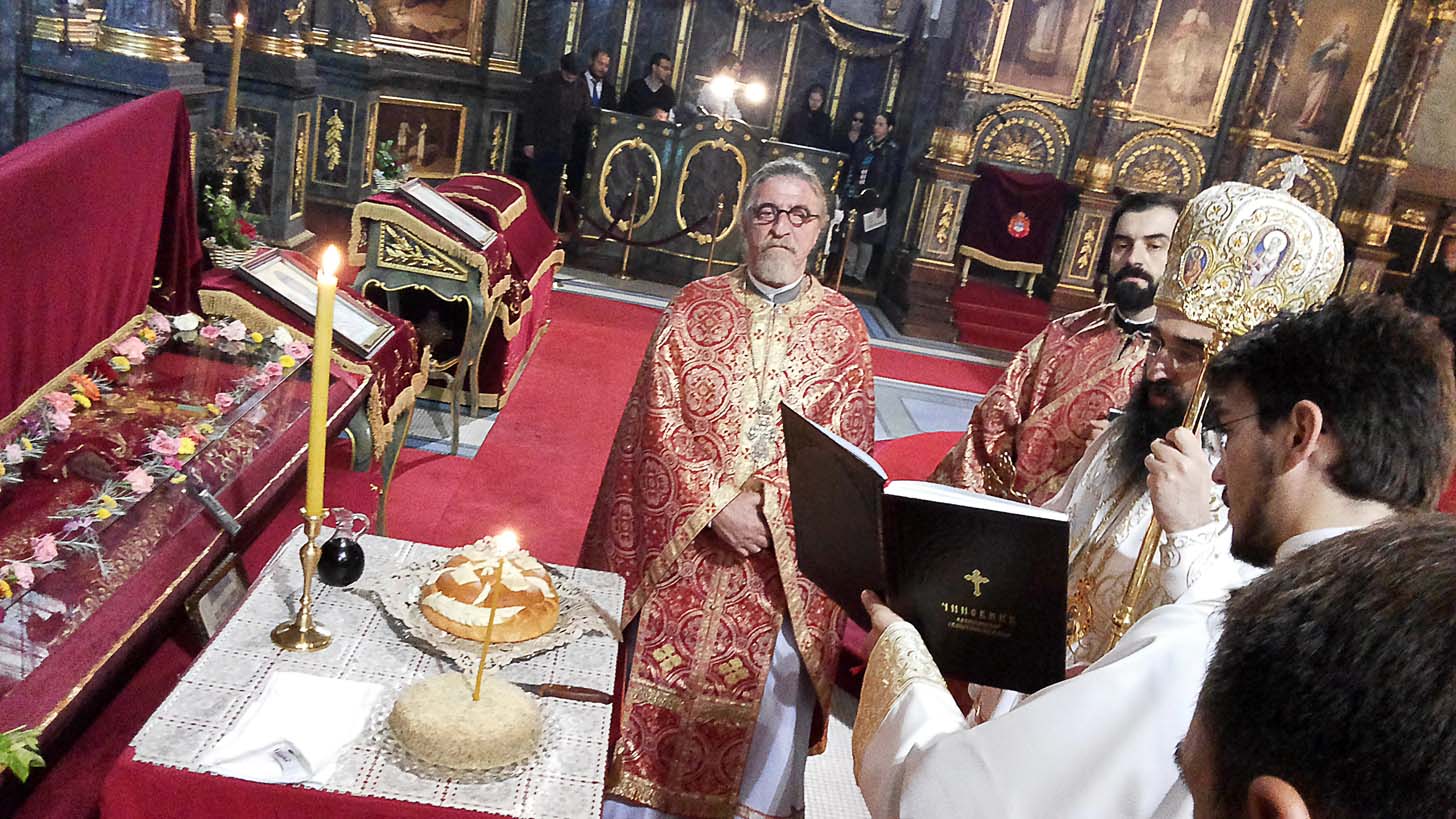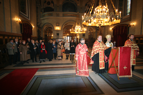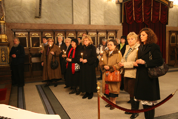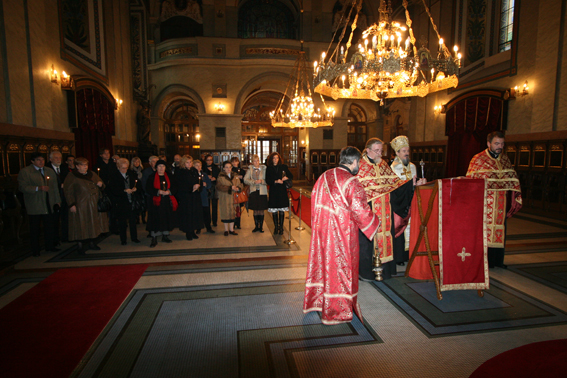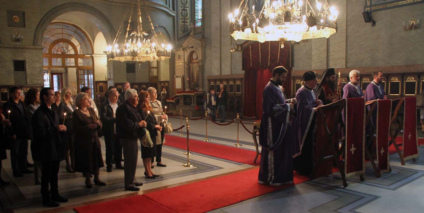 ![]() Парастос Коларцу У наставку дана, са почетком у 11:30, служен је и парастос Илији Милосављевићу Коларцу, у организацији Коларчеве задужбине. Служио је епископ топлички Арсеније, викар патријарха српског, уз саслужење братства Саборне цркве. Служећи традиционално сваке године парастос овом великом српском добротвору и молећи се за спасење његове душе, Саборна црква даје свој допринос очувању спомена на Коларца, који је својом великом заоставштином и доброчинствима трајно задужио српски народ.