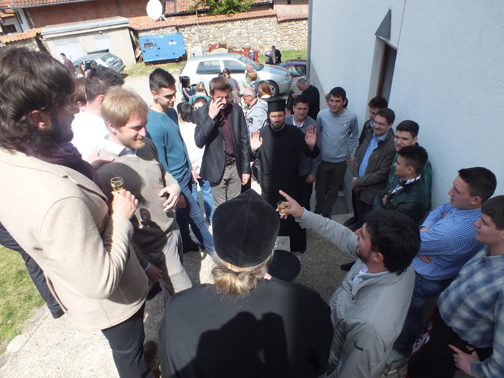 Првог дана гостовања, у суботу, 25. априла, хорови су дочекани братском и срдачном добродошлицом од стране игумана манастира Драганац, о. Илариона (Лупуловића), где је заједнички служен молебан за сав страдални српски народ на Косову и Метоији. Затим су хорови гостовали у разним косметским парохијама. Прво београдско певачко друштво одржало је концерт и певало на вечерњем богослужењу у цркви у селу Горње Кусце. У Недељу Мироносица, 26. априла, служена је Света Литургија у цркви Светог Ђорђа у Призрену. Литургијом је началствовао старешина београдске Саборне цркве, прота Петар Лукић, а саслуживали су монаси и свештенослужитељи Епархије рашко-призренске, прота Трајан Којић, старешина београдске цркве Светог Марка, о. Бобан из Смедерева, као и протођакон београдског Саборног храма, Радомир Перчевић, уз одговарање хорова. Након тога, сви заједно су посетили Призренску богословију, а свечану трпезу љубави је за све госте приредио игуман манастира Светих Архангела код Призрена, о. Михаило, дочекавши ово велико сабрање на најтоплији начин. Хорови су посетили и Високе Дечане и Пећку патријаршију, а у Грачаници су учествовали и на вечерњем богослужењу. Служили су прота Петар Лукић и протођакон Радомир Перчевић, у присуству Преосвећеног епископа Теодосија. Истог дана, одржан је и концерт свих хорова у Дому културе у Грачаници. |