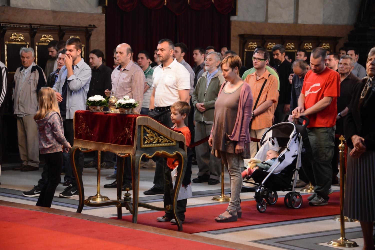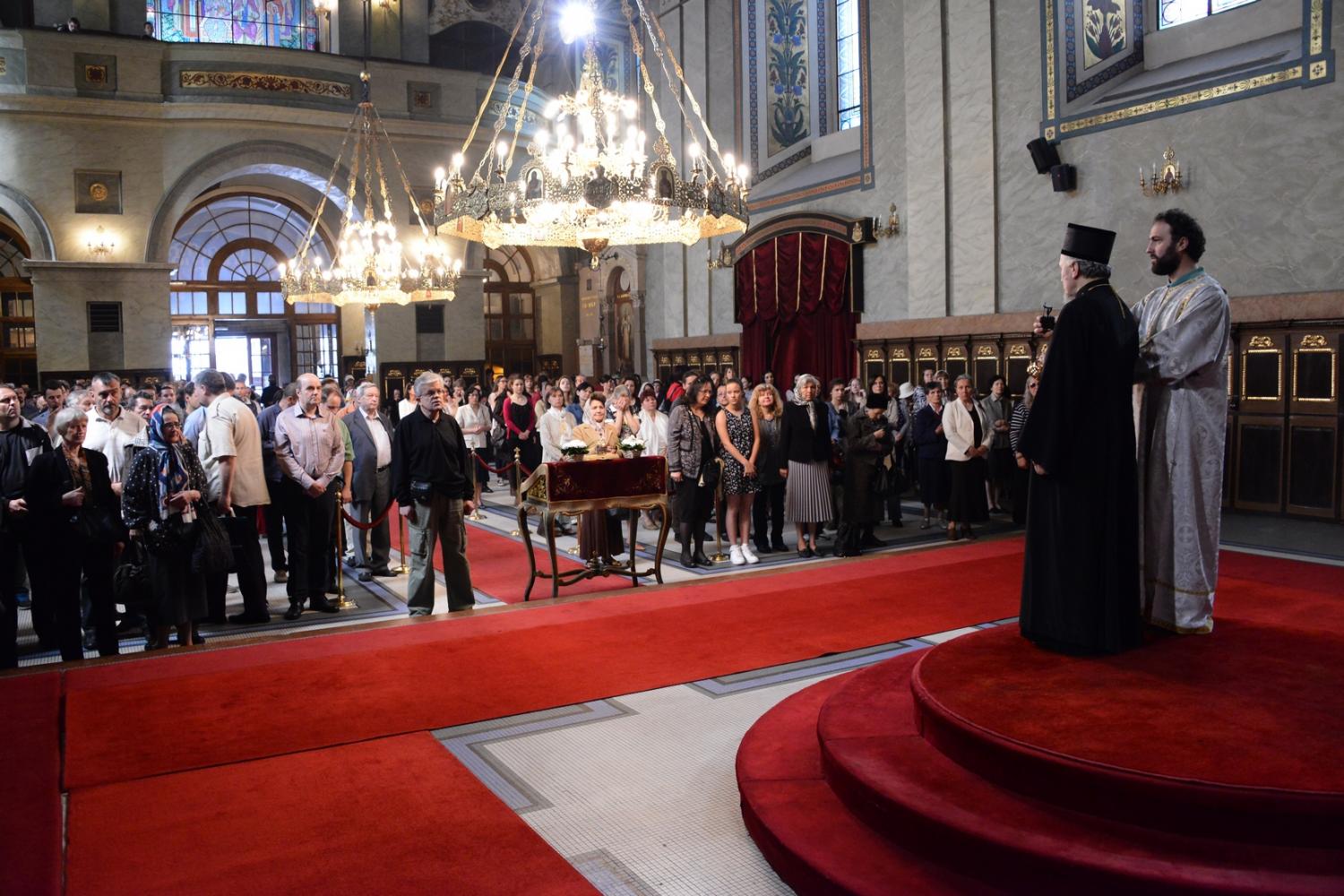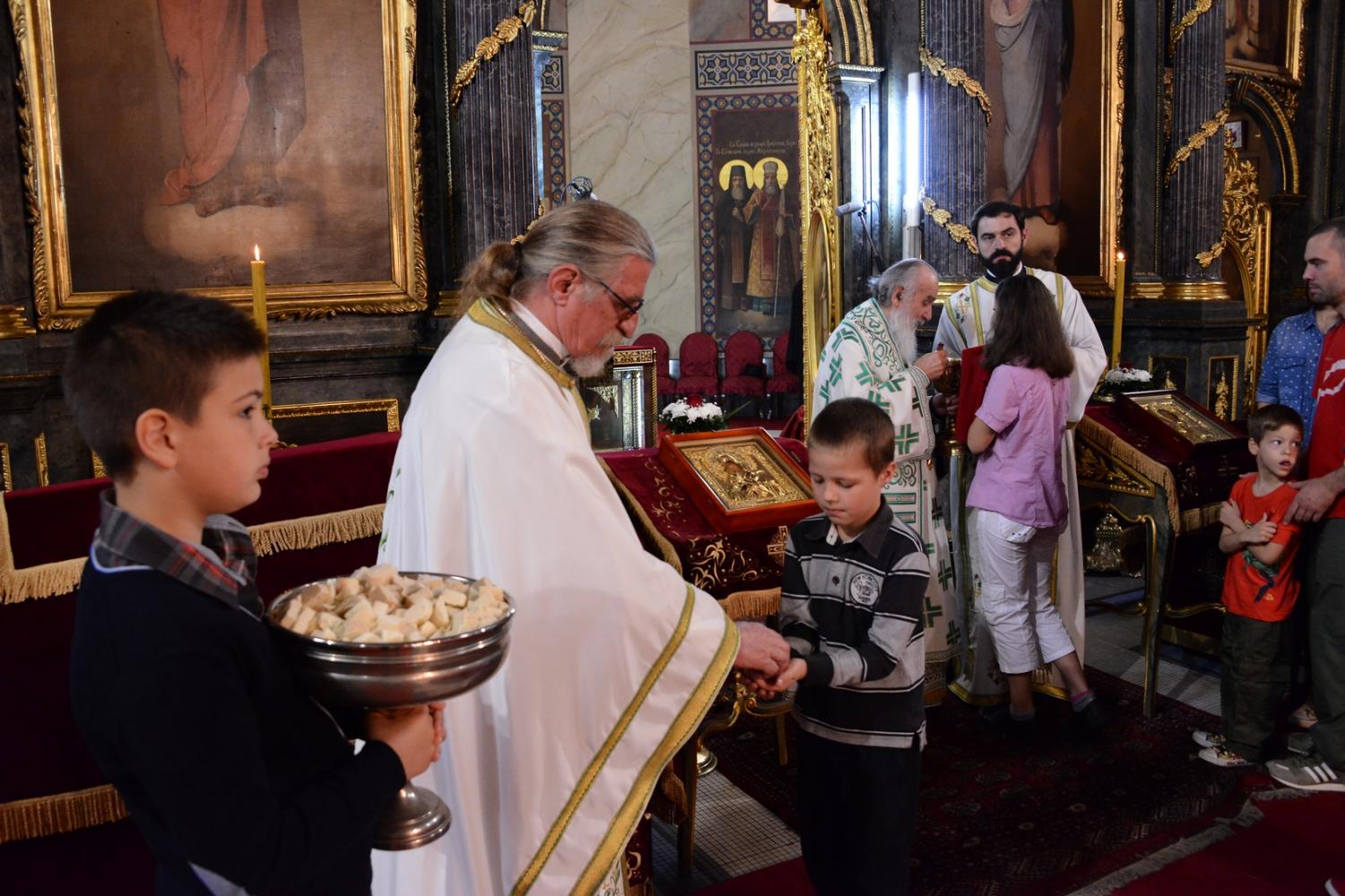 ![]() Његова Светост патријарх српски г. Иринеј служио је Свету архијерејску Литургију у Саборној цркви, у Недељу слепога, 17. маја 2015. године, уз саслужење братства овог храма. Литургији су присуствовали и Њихова Преосвештенства господа епископи, сабрани на овогодишњем пролећном заседању Сабора СПЦ: источноамерички Митрофан, британско-скандинавски Доситеј, будимљанско-никшићки Јоаникије и аустријско-швајцарски Андреј. Певао је Дечији хор Првог београдског певачког друштва, предвођен хоровођом Радмилом Кнежевић. Епископ источноамерички Митрофан беседио је верном народу на Јеванђеље о исцељењу слепога, које се тога дана чита током Литургије; нагласивши значај, одговорност и смисао литургијског живота родитеља и деце, на који су сви родитељи призвани, а не чинећи то – удаљавају се од Христа и постају духовно слепи, што је много теже и страшније од физичког слепила.