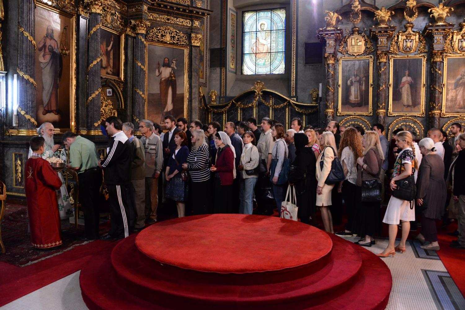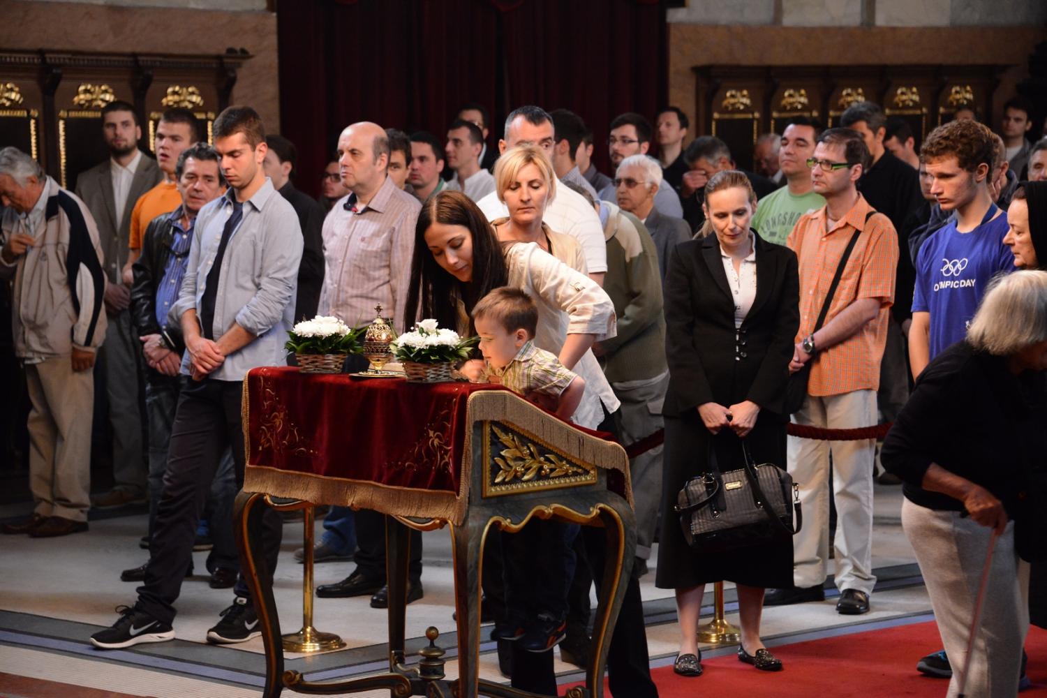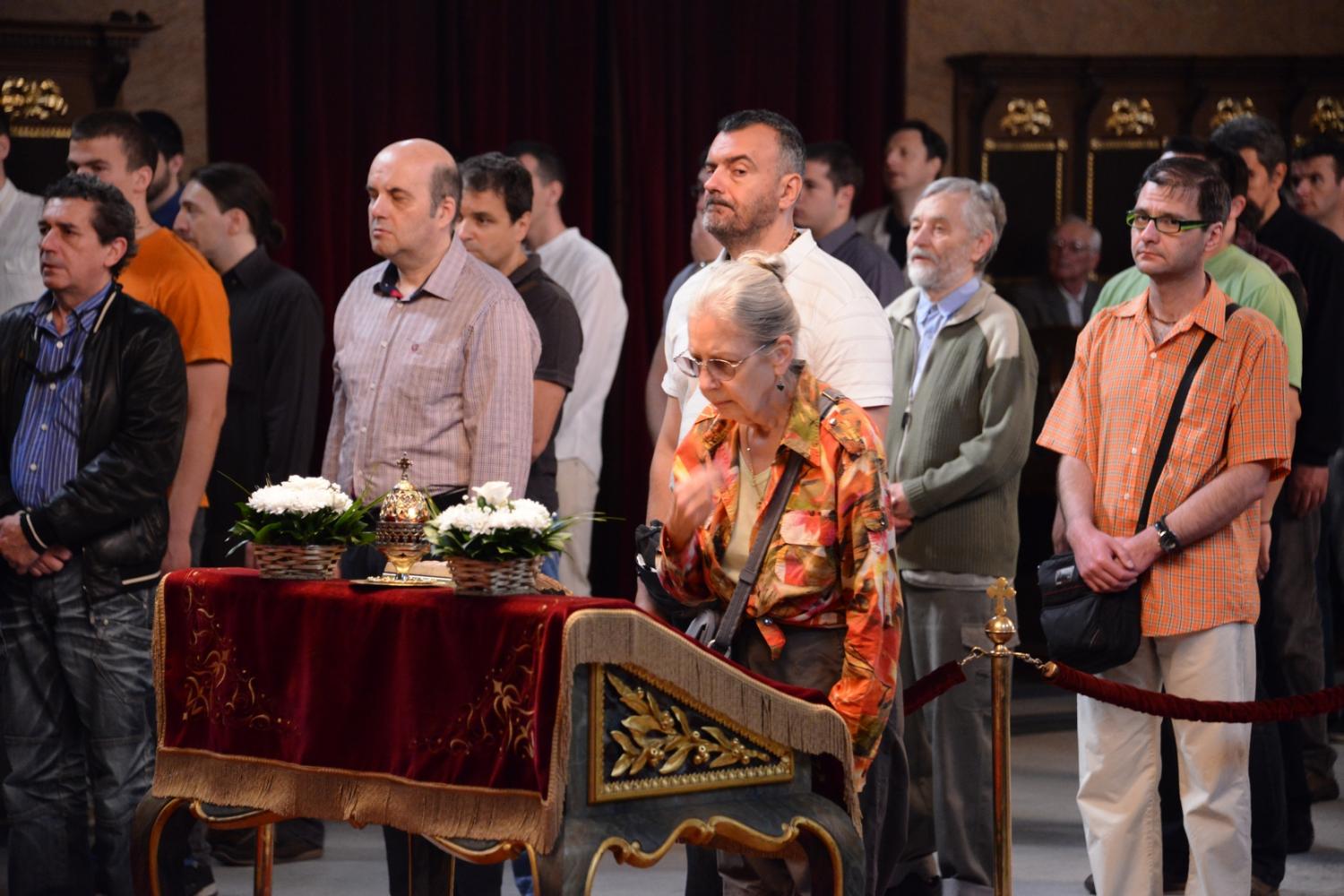 ![]() Његова Светост патријарх српски г. Иринеј служио је Свету архијерејску Литургију у Саборној цркви, у Недељу слепога, 17. маја 2015. године, уз саслужење братства овог храма. Литургији су присуствовали и Њихова Преосвештенства господа епископи, сабрани на овогодишњем пролећном заседању Сабора СПЦ: источноамерички Митрофан, британско-скандинавски Доситеј, будимљанско-никшићки Јоаникије и аустријско-швајцарски Андреј. Певао је Дечији хор Првог београдског певачког друштва, предвођен хоровођом Радмилом Кнежевић. Епископ источноамерички Митрофан беседио је верном народу на Јеванђеље о исцељењу слепога, које се тога дана чита током Литургије; нагласивши значај, одговорност и смисао литургијског живота родитеља и деце, на који су сви родитељи призвани, а не чинећи то – удаљавају се од Христа и постају духовно слепи, што је много теже и страшније од физичког слепила.
