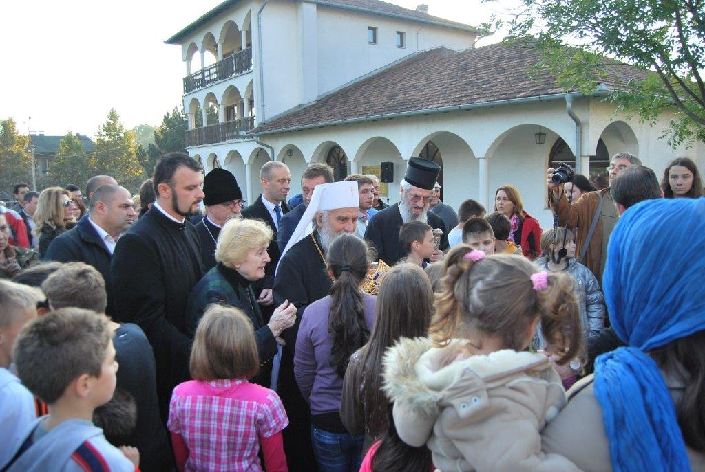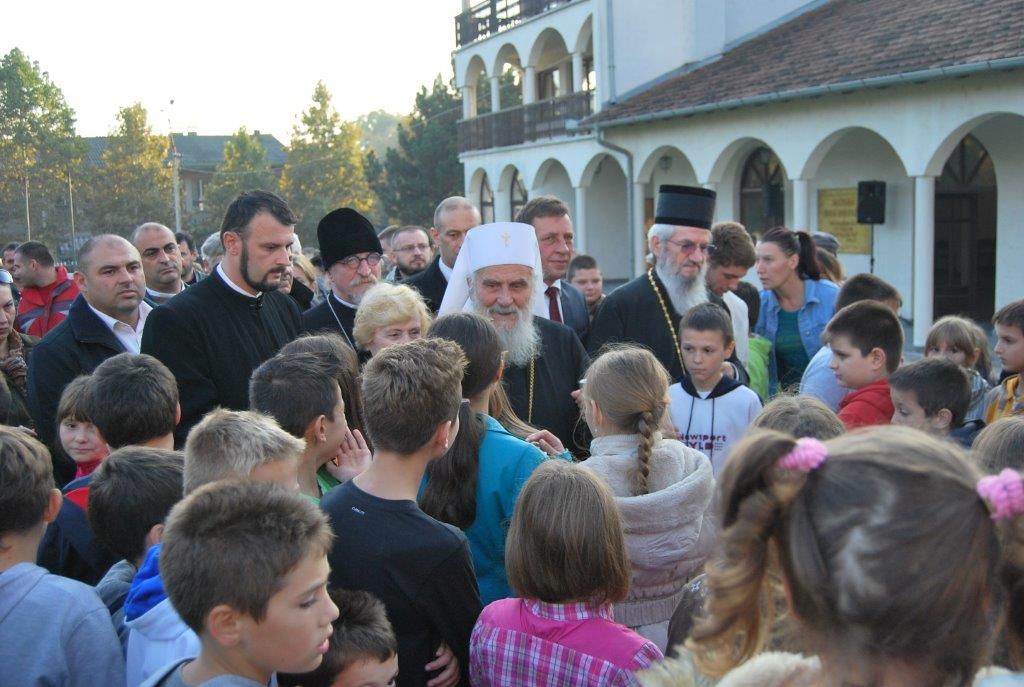 ![]() Орден Светог Саве проф. др Радмили Милентијевић Благочестиви народ овог краја је срдачно и свечано дочекао поглавара Српске православне цркве, на чему је Његова Светост изразио велику благодарност, пре свега због великог броја малишана, указавши, у поздравном слову, на значај рађања деце, као на једини начин да се српски народ избори против беле куге и свог биолошког пропадања. Патријарх српски Иринеј је нарочито истакао пример ктиторке, гђе Радмиле Милентијевић, која своје дарове од Бога није сачувала за себе, већ је несебично помагала Цркву и свој народ, где год је могла, угледајући се на ктиторство Светог краља Милутина, који је подигао 40 светиња. Истог дана, Његова Светост је посетио и храм у суседном селу, Влашки До, родно место проф. др Радмиле Милентијевић, благословивши и мештане овог места и изазивши наду да ће поново посетити ове прелепе шумадијске крајеве. У завршници ове значајне посете и великих догађаја, првојерарх СПЦ је посетио и храм Свете мајке Параскеве у Смедеревској Паланци.