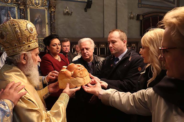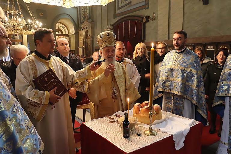 Његова Светост патријарх српски г. Иринеј служио је у суботу, 14. новембра 2015. године, на Свете Враче Козму и Дамјана, Свету архијерејску Литургију у Саборној цркви, уз саслужење братства овог храма и свештенослужитеља Архиепископије београдско-карловачке. Свете Враче прославља више здравствених институција и установа, међу њима и Лекарска комора Србије, која је своју Славу молитвено и литургијски прославила у Саборном храму. Патријарх Иринеј је, после Литургије, освештао жито и преломио славски колач заједно са директором Лекарске коморе Србије, др Весном Јовановић, сарадницима Коморе и верним народом. Честитајући свечарима, Његова Светост је, у празничној беседи, указао сабрани народ на богоугодни живот Светих бесребреника и лекара (врача) Козме и Дамјана, који су болесне и невољне лечили уз Божију помоћ, не очекујући за то награду и славу. |