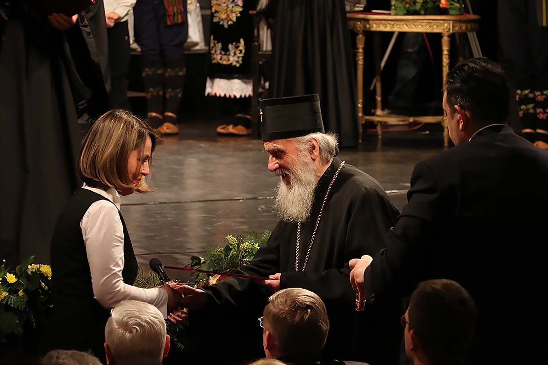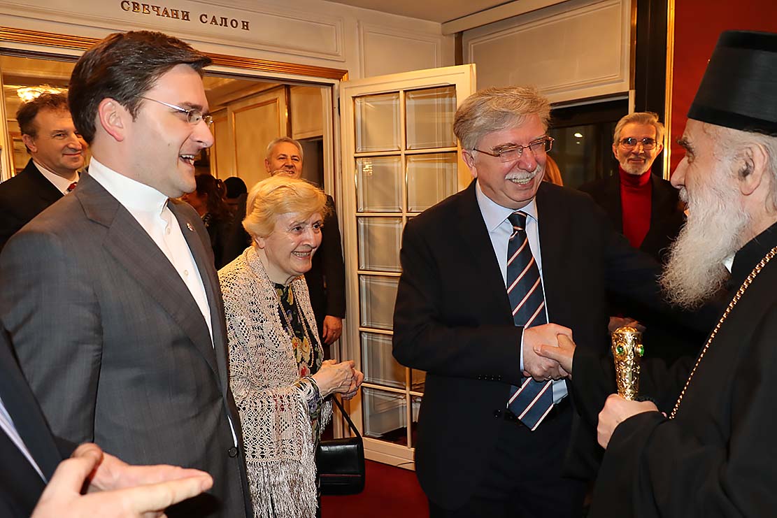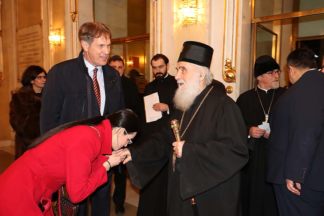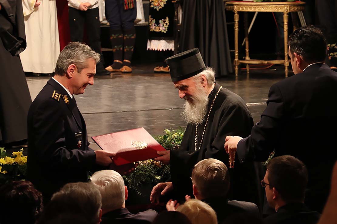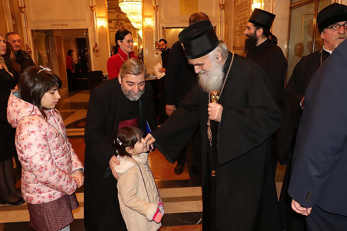 На крају вечери, прота Петар Лукић се обратио угледним званицама и благодарио свим учесницима Новогодишњег концерта и онима који су помогли његову припрему и реализацију, и поздравио проф. др Радмилу Милентијевић из Њујорка, као домаћина овогодишње Славе ПБПД. У знак захвалности за несебичну помоћ пружану, већ низ година, Саборној цркви у Београду, патријарх српски г. Иринеј је уручио, овом приликом, патријарашке грамате Народном позоришту у Београду, ТВ Студио Б и Дому Војске Србије. Радост и свечаност ове вечери настављена је свечаном вечером у Дому Војске Србије, за славском трпезом ПБПД, коју је омогућила проф. др Радмила Милентијевић, прошлогодишњи добитник Ордена Светог Саве.