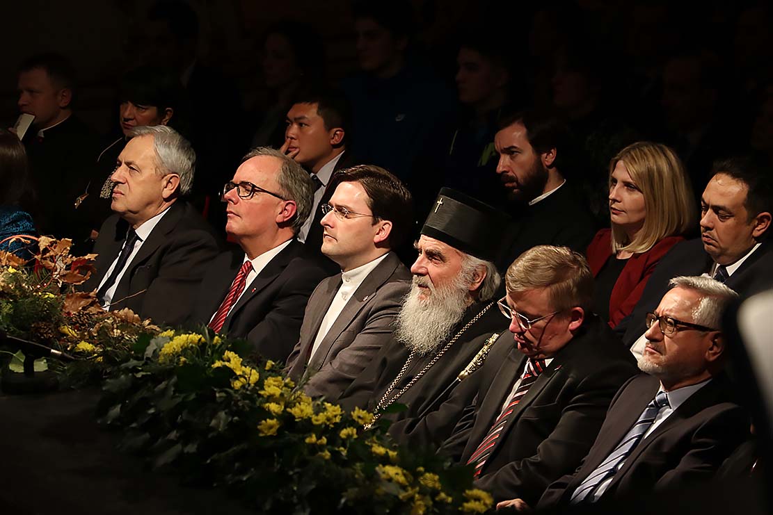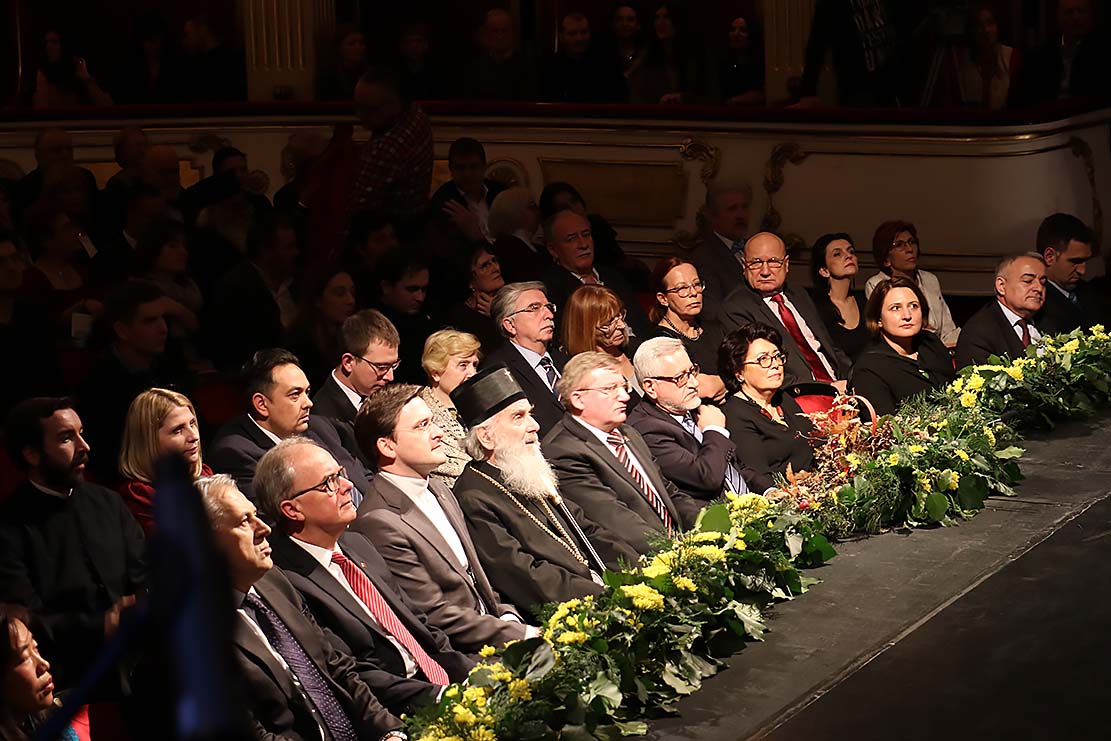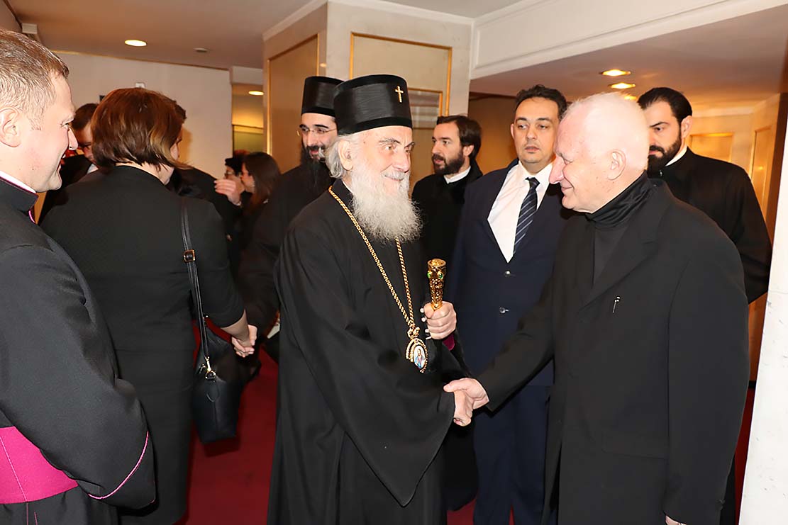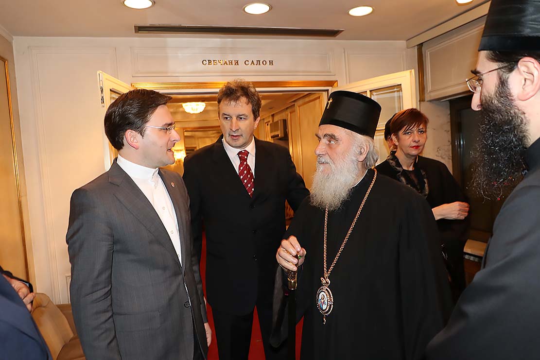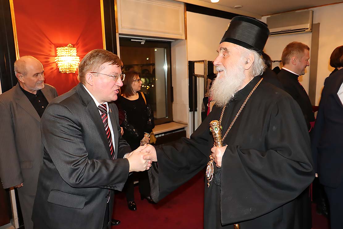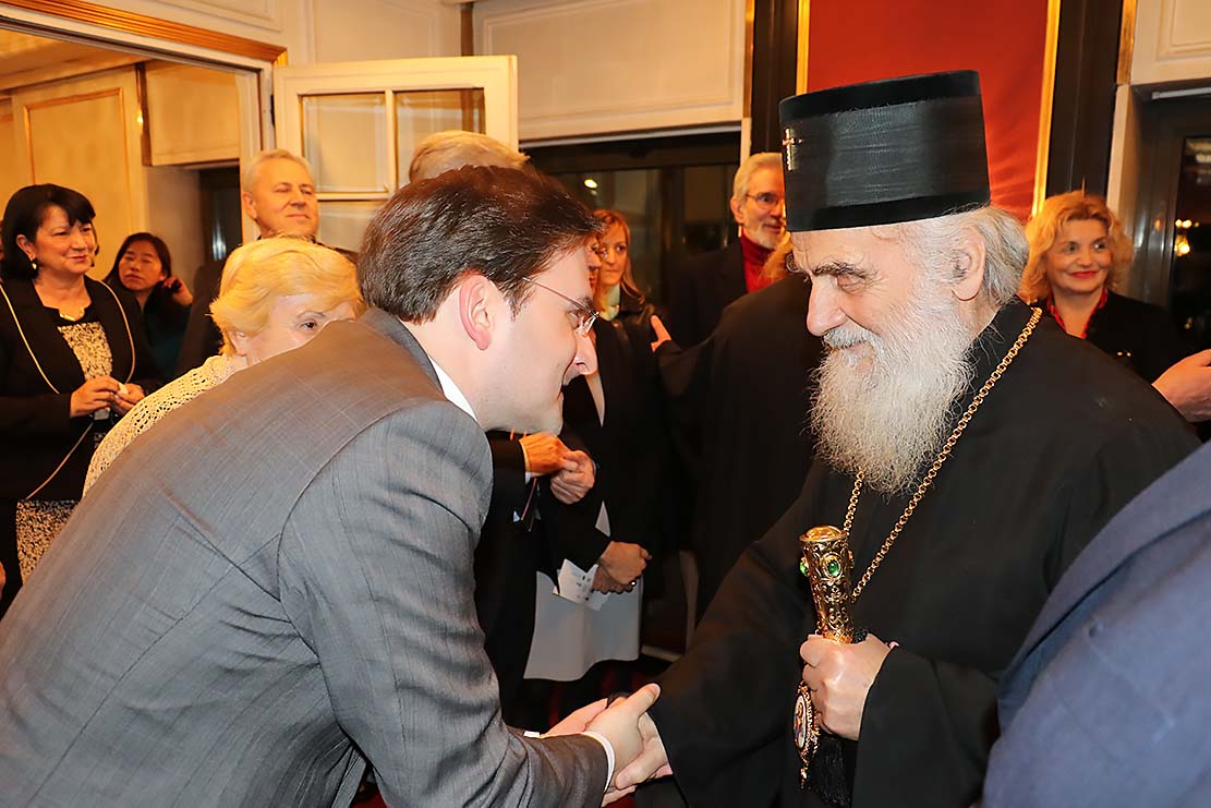 На крају вечери, прота Петар Лукић се обратио угледним званицама и благодарио свим учесницима Новогодишњег концерта и онима који су помогли његову припрему и реализацију, и поздравио проф. др Радмилу Милентијевић из Њујорка, као домаћина овогодишње Славе ПБПД. У знак захвалности за несебичну помоћ пружану, већ низ година, Саборној цркви у Београду, патријарх српски г. Иринеј је уручио, овом приликом, патријарашке грамате Народном позоришту у Београду, ТВ Студио Б и Дому Војске Србије. Радост и свечаност ове вечери настављена је свечаном вечером у Дому Војске Србије, за славском трпезом ПБПД, коју је омогућила проф. др Радмила Милентијевић, прошлогодишњи добитник Ордена Светог Саве.