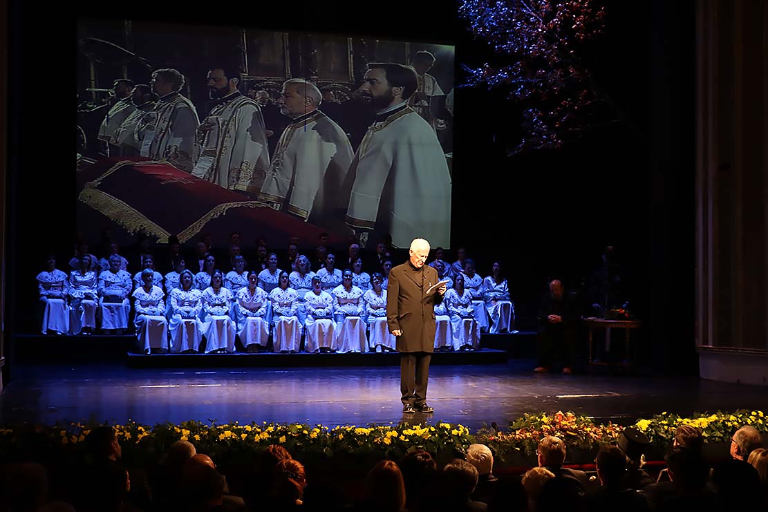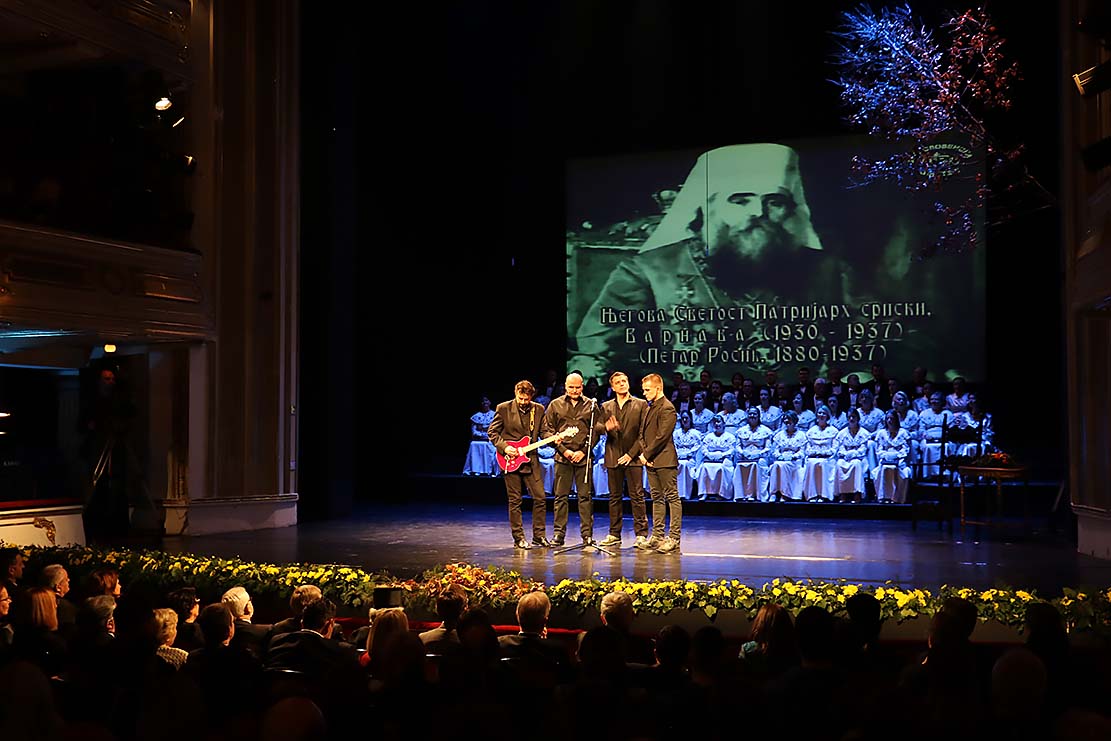 После благослова Његове Светости, молитве "Оче наш" и српске химне "Боже правде", у извођењу Првог београдског певачког друштва (ПБПД), под руководством диригента Светлане Вилић, старешина Саборне цркве у Београду и председник ПБПД, протојереј-ставрофор Петар Лукић, прочитао је традиционалну Новогодишњу поруку Његове Светости патријарха српског. Наступили су: наш најбољи гуслар, Бојана Пековић, у пратњи Николе Пековића на хармоници, изводећи песму Светог владике Николаја. Казивање академика и почасног госта концерта, г. Матије Бећковића, његове песме "Слава Теби, Боже", изазвало је, као и увек, снажне утиске гледалишта, отворивши тако емоцијама бојену свечаност, после чега је Дечији хор ПБПД, под руковођењем диригента Радмиле Кнежевић, певао песме "Дед и унук" и "Тамо далеко", у истом духу и уз клавирску пратњу Вере Миланковић. Малишани су били достојна музичка пратња и барду српске сцене, г. Хаџи Петру Божовићу, док је казивао "Плаву гробницу", М. Радовића. ПБПД је изводио песме "Срадујтесја нам" (Дегтјарјова), знамениту "Агиос о Теос" (Папаконстантинуа) и "Покајничку молитву", Владимира Милосављевића, са бриљантним солистом Ђорђем Томићем (бас). За време концерта, на великом платну емитоване су фотографије из живота Саборног храма, као и историјски снимци из живота ове светиње, који се налазе у Архиви Кинотеке, међу њима и документарни снимци о крунисању краља Петра Првог Карађорђевића.