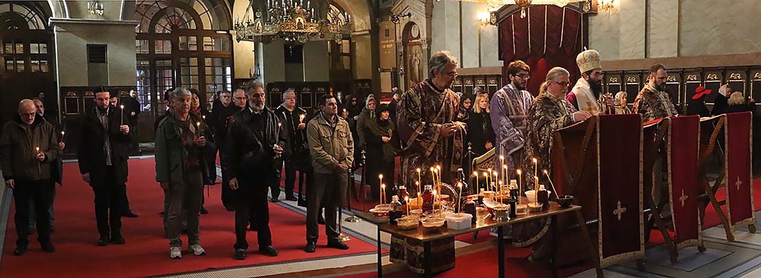 ![]() Задушнице у Саборној цркви На Задушнице, уочи Месопусне недеље, 5. марта 2016. године, Његово Преосвештенство епископ топлички г. Арсеније, викар патријарха српског, служио је Свету архијерејску Литургију у Саборној цркви, уз саслуживање протојереја-ставрофора Петра Лукића, старешине храма, протојереја Миодрага Ристића и протођакона Радомира Перчевића. После заамвоне молитве, служен је помен за блаженопочивше патријархе, митрополите, епископе, свештенослужитеље, ктиторе, приложнике, добротворе, парохијане Саборног храма и све сроднике наше, уснуле са надом на Васкрсење и Живот вечни.