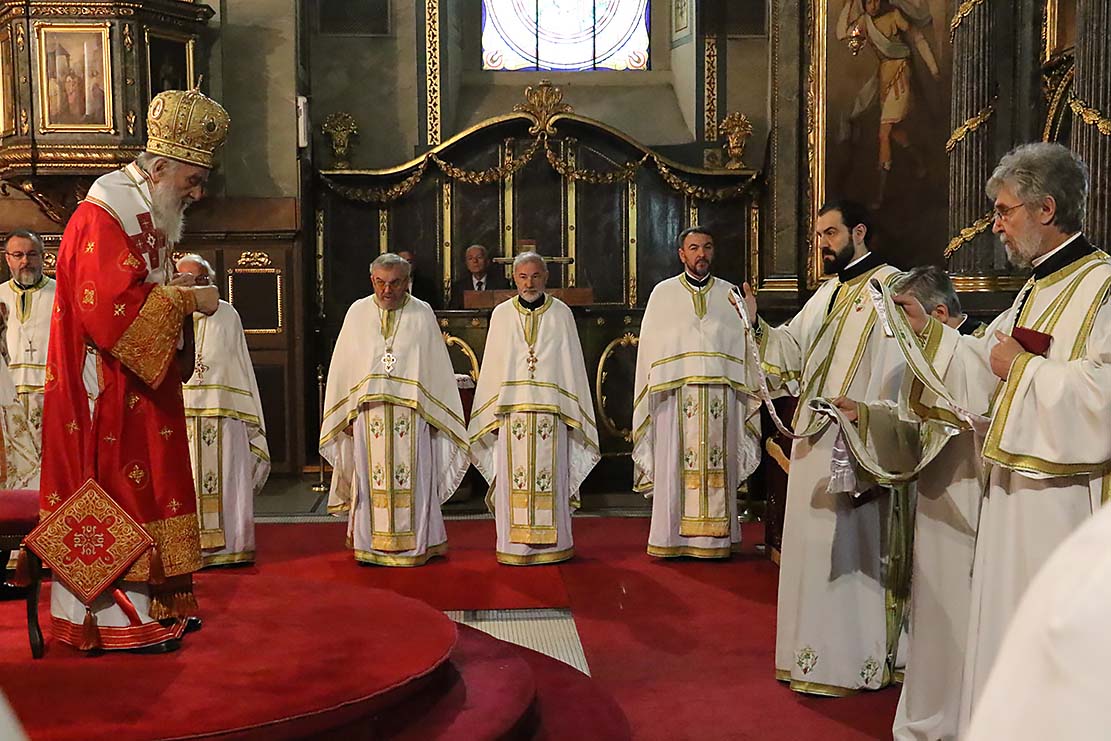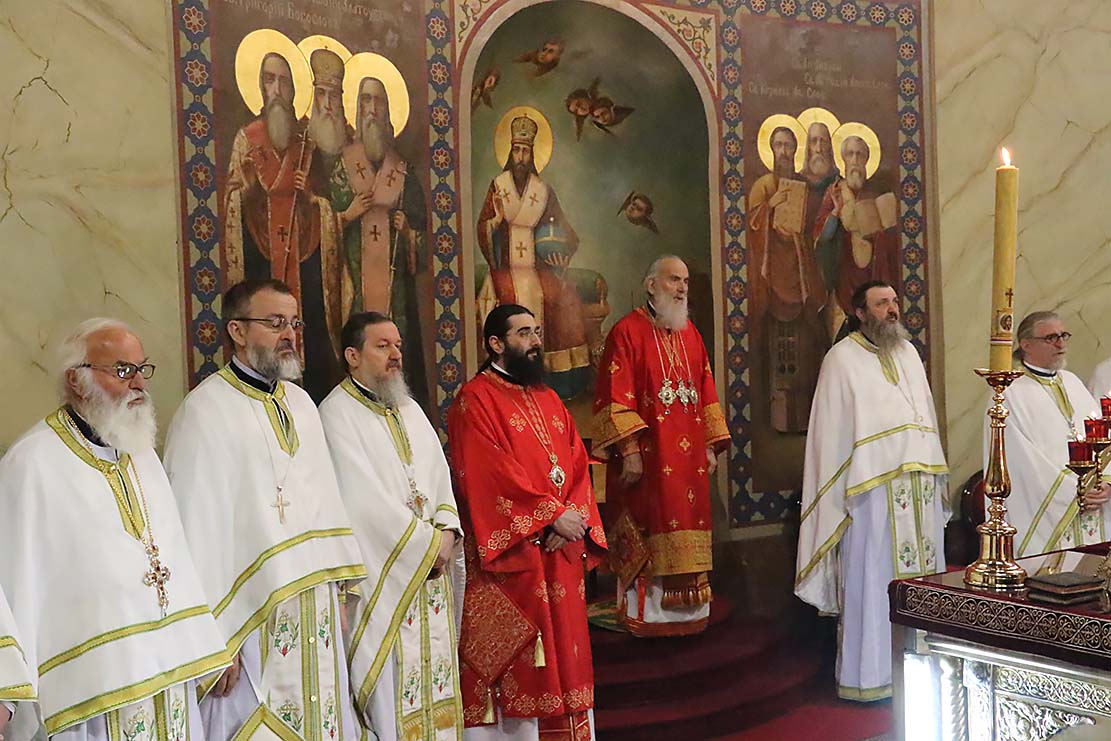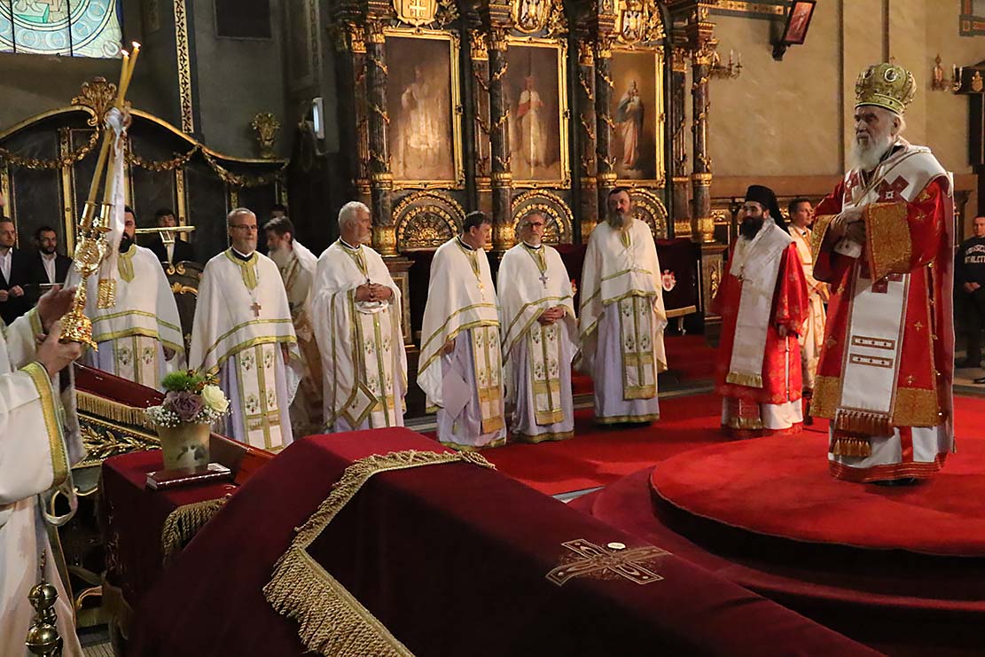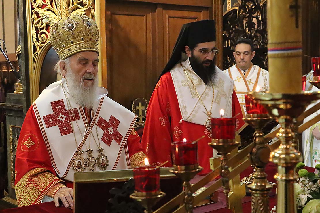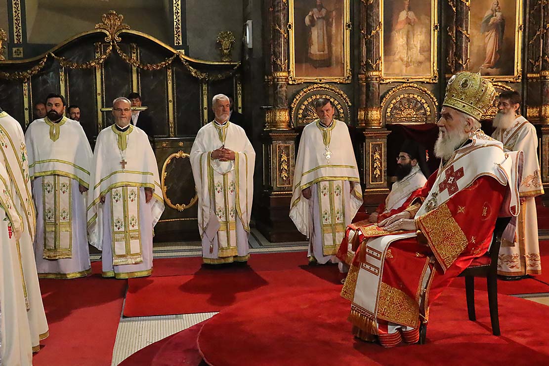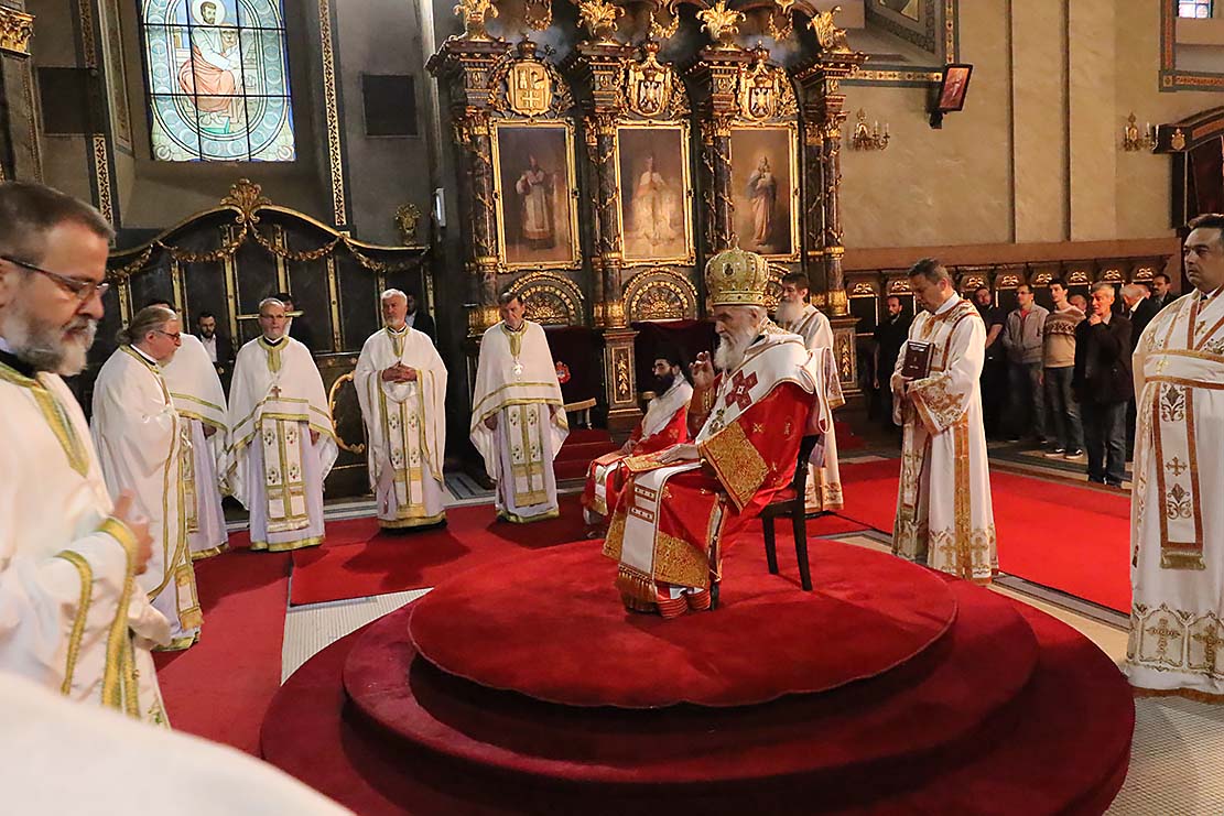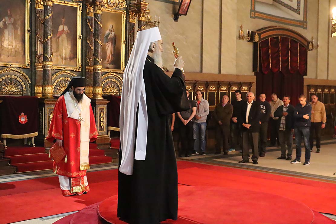![]() Лазарева субота Његовој Светости саслуживали су: епископ топлички г. Арсеније, викара патријарха српског; старешина манастира Ново Хопово, архимандрит Павле Јовић; главни секретар Светог Архијерејског Синода, протојереј-ставрофор др Саво Јовић; архијерејски намесник београдски, протојереј-ставрофор проф. др Владимир Вукашиновић; директор Патријаршијске управне канцеларије, протојереј-ставрофор Стојадин Павловић; старешина Покровске цркве, протојереј-ставрофор Мирослав Миленковић; декан Православног богословског факултета, протојереј-ставрофор др Предраг Пузовић; ректор Богословије Светог Саве, протојереј-ставрофор др Драган Протић; старешина Саборне цркве, протојереј-ставрофор Петар Лукић; старешина цркве Светог Симеона Мироточивог, протојереј-ставрофор Радич Радичевић; протојереј-ставрофор Мирољуб Стојановић из Епархије нишке; парох храма Васкрсења Христовог из Франкфурта, протојереј Симон Туркић; парох Саборне цркве, јереј Славиша Поповић; као и протођакони Радимир Перчевић, Стеван Рапајић, др Дамјан Божић, ипођакон Мирослав Ракоњац и чтеци Владимир Јелић, Дејан Накић и Ђорђе Мијајловић. Торжественост празника појањем је увеличао Патријаршијски мушки хор, који води ђакон Владимир Руменић, из Храма Светог Саве.