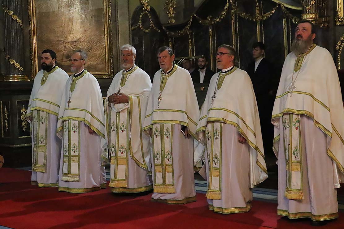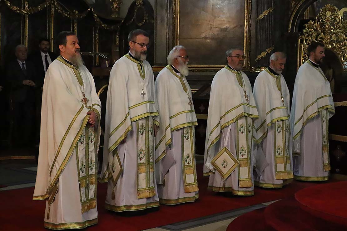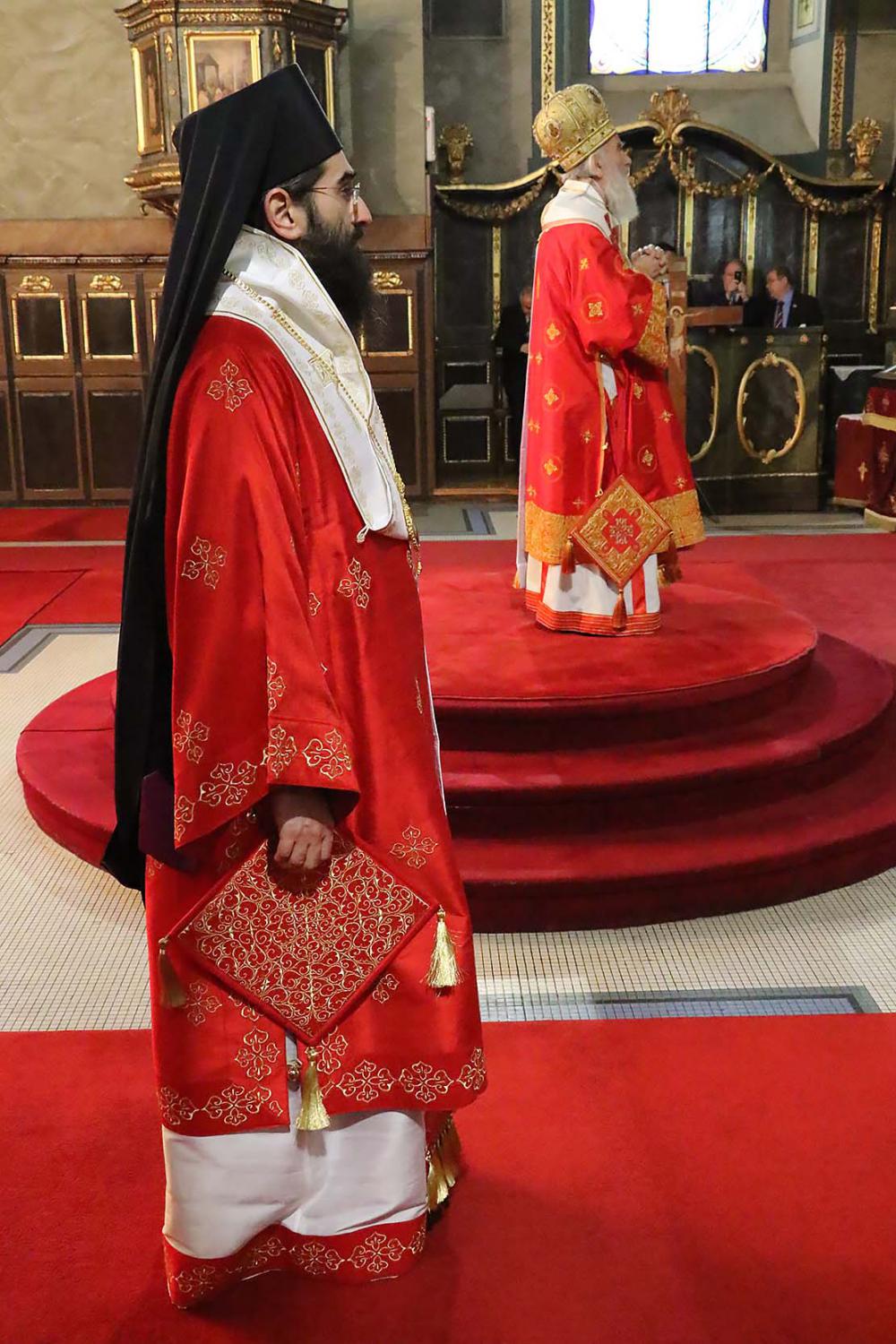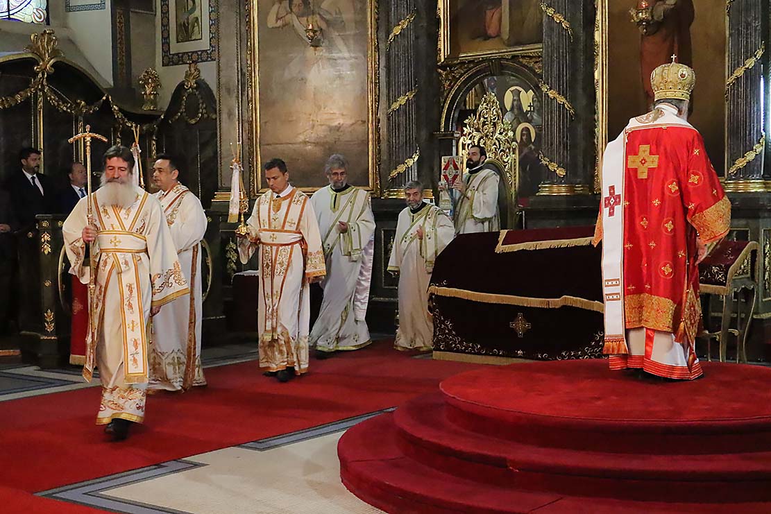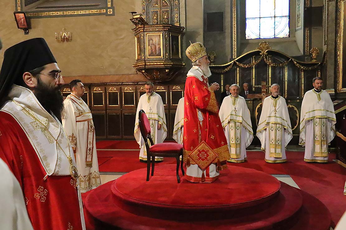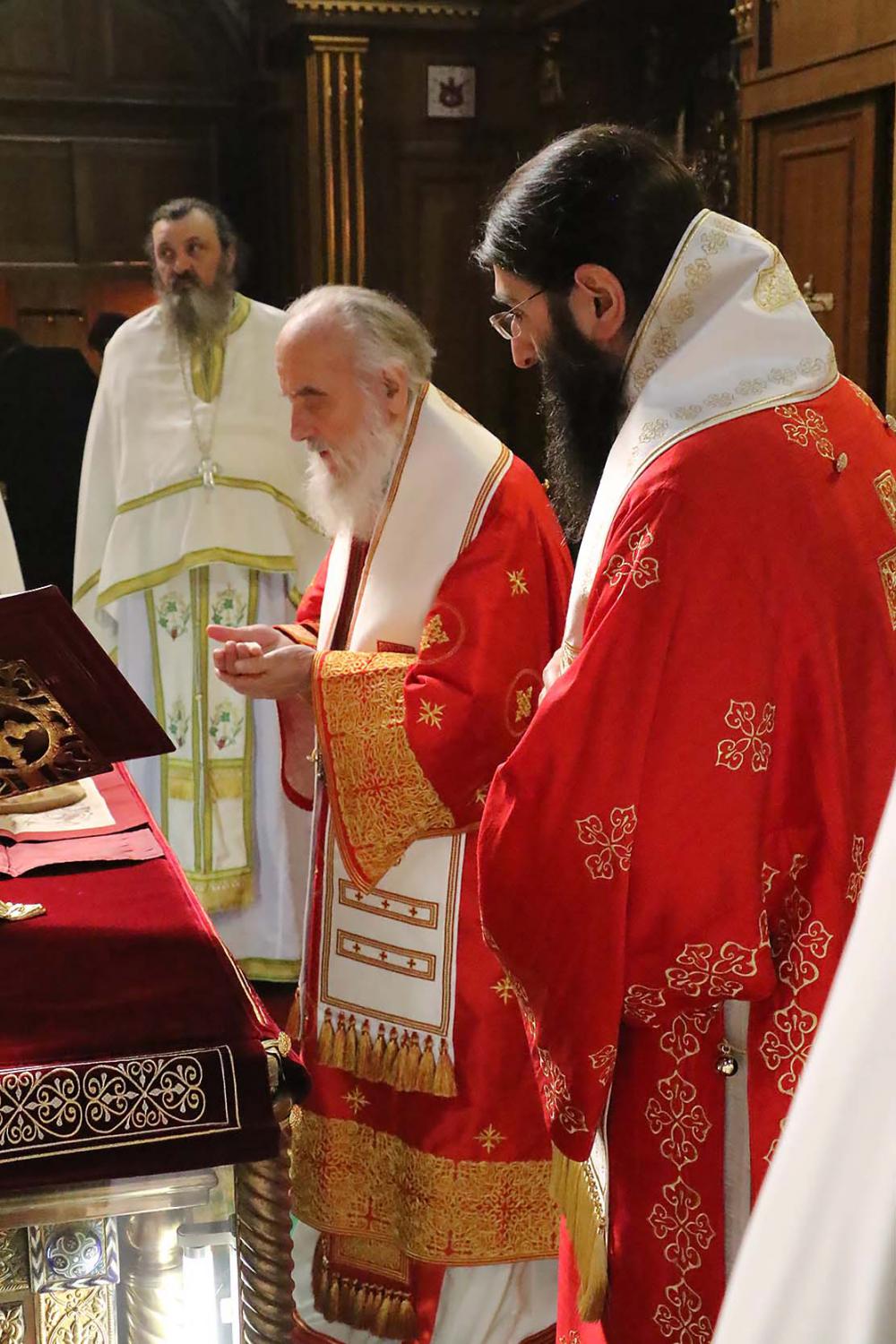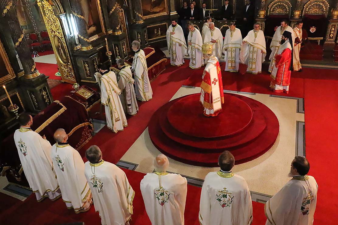 ![]() Лазарева субота Његовој Светости саслуживали су: епископ топлички г. Арсеније, викара патријарха српског; старешина манастира Ново Хопово, архимандрит Павле Јовић; главни секретар Светог Архијерејског Синода, протојереј-ставрофор др Саво Јовић; архијерејски намесник београдски, протојереј-ставрофор проф. др Владимир Вукашиновић; директор Патријаршијске управне канцеларије, протојереј-ставрофор Стојадин Павловић; старешина Покровске цркве, протојереј-ставрофор Мирослав Миленковић; декан Православног богословског факултета, протојереј-ставрофор др Предраг Пузовић; ректор Богословије Светог Саве, протојереј-ставрофор др Драган Протић; старешина Саборне цркве, протојереј-ставрофор Петар Лукић; старешина цркве Светог Симеона Мироточивог, протојереј-ставрофор Радич Радичевић; протојереј-ставрофор Мирољуб Стојановић из Епархије нишке; парох храма Васкрсења Христовог из Франкфурта, протојереј Симон Туркић; парох Саборне цркве, јереј Славиша Поповић; као и протођакони Радимир Перчевић, Стеван Рапајић, др Дамјан Божић, ипођакон Мирослав Ракоњац и чтеци Владимир Јелић, Дејан Накић и Ђорђе Мијајловић. Торжественост празника појањем је увеличао Патријаршијски мушки хор, који води ђакон Владимир Руменић, из Храма Светог Саве.