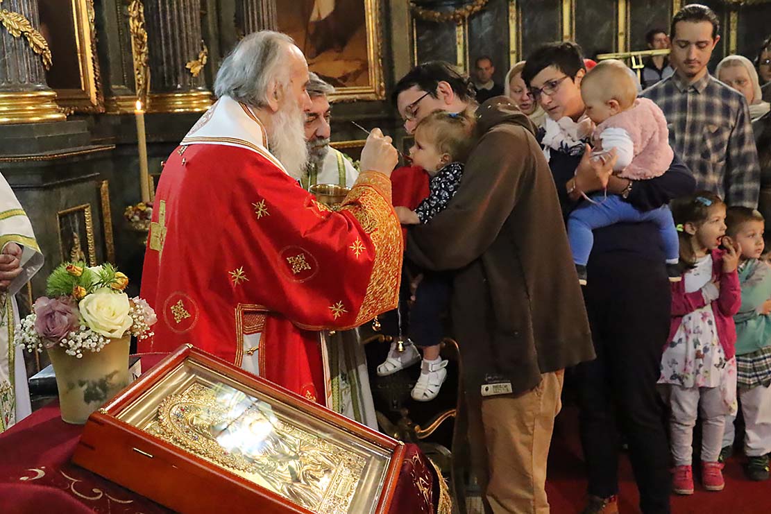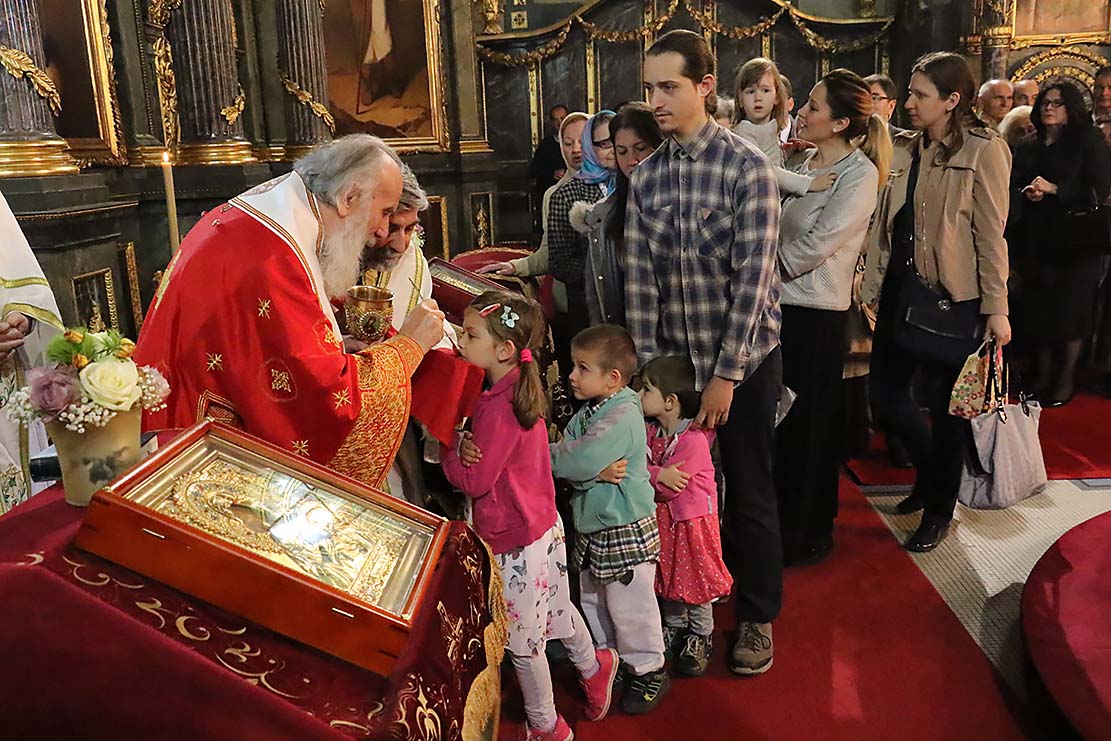 У поподневним часовима, са почетком у 16 часова, саборно, молитвено и радосно је прослављена Врбица, на вечерњој служби, чином освећења врбових гранчица и свечаном трикратном литијом око Саборног храма, уз учешће бројних верника и деце, украшене венчићима и звончићима, дочекујући тако велики празник Уласка Господа Исуса Христа у Јерусалим – Цвети. Богослужењем је началствовао патријарх српски г. Иринеј, уз саслужење братства Саборне цркве.