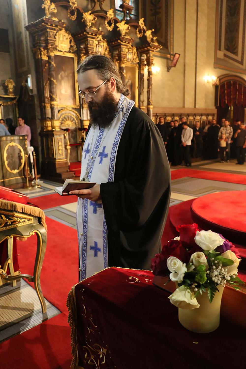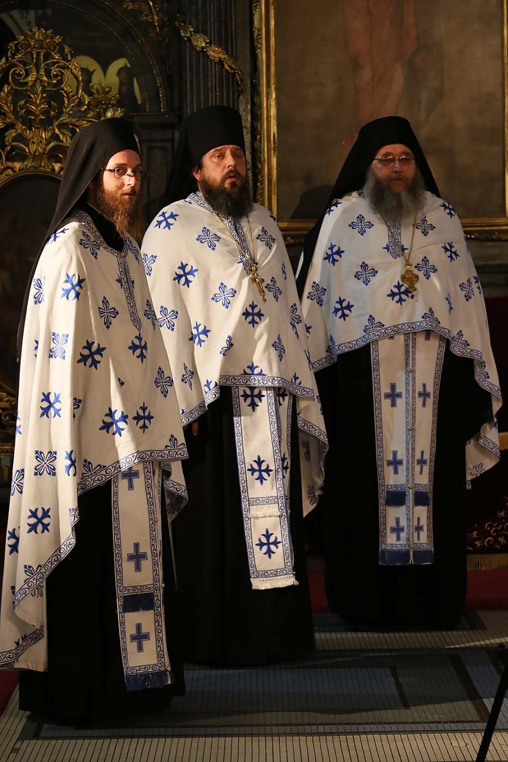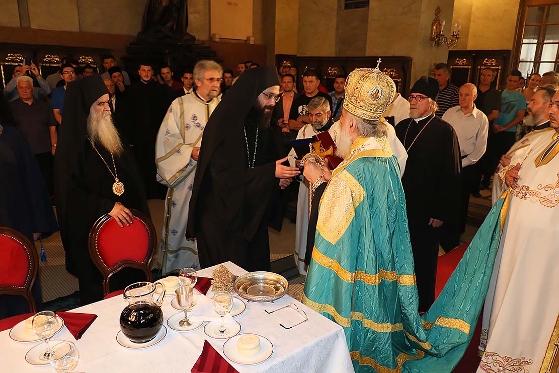 Пошто је архимандрит Силуан, пред присутним сабрањем наше Свете Цркве, изјавио да се повинује вољи Светог архијерејског Сабора, који га је изабрао за епископа Цркве Христове у Аустралији и Новом Зеланду, примивши благослов патријарха српског Иринеја и присутних архијереја, наречени епископ је началствовао вечерњом службом у Саборној цркви. Саслуживали су Високопреподобни архимандрити: Тихон (Ракићевић), игуман манастира Студеница; Михаило (Биковић), игуман манастира Јовање; Петар (Радуловић), архијерејски заменик; Данило, игуман манастира Плужац; јеромонаси Варнава (Радусиновић), духовник манастира Раковац; Пајсије (Будимир), духовник манастира Врдник-Раваница. Уз свештеномонаштво, саслуживали су и: јерођакон Силуан (Поповић), протођакони Радомир Перчевић, Стеван Рапајић и Петар Мракић, као и ђакон Владимир Руменић. Свечаност су улепшали појањем појци студенти Богословског факултета и Прво београдско певачко друштво. |