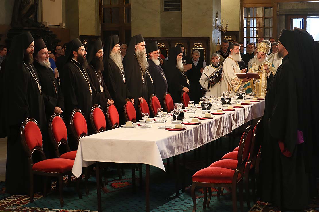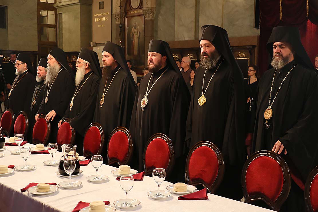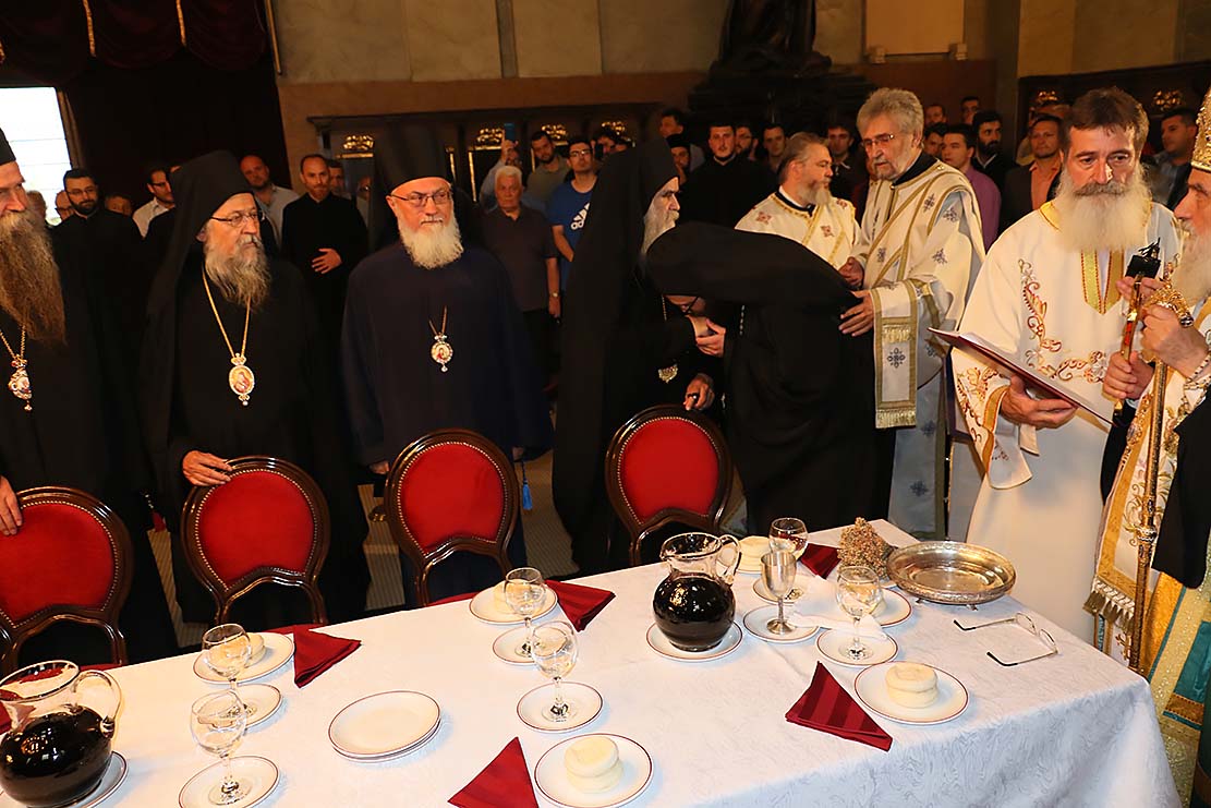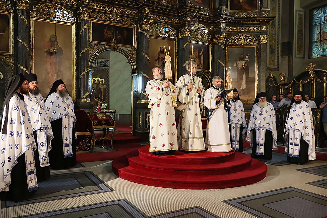 Пошто је архимандрит Силуан, пред присутним сабрањем наше Свете Цркве, изјавио да се повинује вољи Светог архијерејског Сабора, који га је изабрао за епископа Цркве Христове у Аустралији и Новом Зеланду, примивши благослов патријарха српског Иринеја и присутних архијереја, наречени епископ је началствовао вечерњом службом у Саборној цркви. Саслуживали су Високопреподобни архимандрити: Тихон (Ракићевић), игуман манастира Студеница; Михаило (Биковић), игуман манастира Јовање; Петар (Радуловић), архијерејски заменик; Данило, игуман манастира Плужац; јеромонаси Варнава (Радусиновић), духовник манастира Раковац; Пајсије (Будимир), духовник манастира Врдник-Раваница. Уз свештеномонаштво, саслуживали су и: јерођакон Силуан (Поповић), протођакони Радомир Перчевић, Стеван Рапајић и Петар Мракић, као и ђакон Владимир Руменић. Свечаност су улепшали појањем појци студенти Богословског факултета и Прво београдско певачко друштво. |