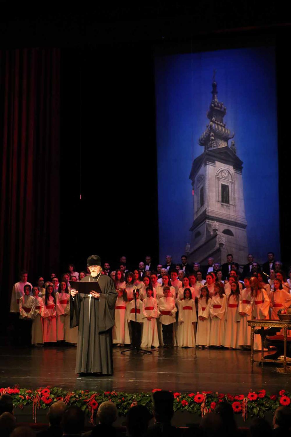 На Светог Василија Великог, у недељу, 14. јануара, Саборна црква је приредила традиционални Новогодишњи концерт у Народном позоришту. Повод су били велики историјски јубилеји: стогодишњица Великог рата и победе српске војске, као и 165 година Првог београдског певачког друштва (ПБПД), најстарије музичке институције у Србији. Као и увек, део програма је био посвећен и Косову и Метохији, речју и песмом. Учествовали су: Прво београдско певачко друштво, под руковођењем Светлане Вилић, Дечији хор ПБПД, са диригентом Радмилом Кнежевић, црквени хор Цар Душан са Космета (Штрпце), Мушка певачка група Крајина (коју чине певачи-избеглице из Хрватске), Бора Ђорђевић, солиста Београдске опере Ана Цветковић Стојнић, Милица и Маја Станишић са Пала и КУД Димитрије Котуровић. Текстове су казивали: академик Матија Бећковић и драмски уметник Хаџи Петар Божовић. Велико одушевљење, снажне емоције и овације је изазвао амбасадор Републике Кине, г. Ли Манчанг, који је, као изненађење вечери, одсвирао на фрули антологијску српску песму Тамо далеко (г. Манчанг је, давних година, студирао у Београду, одлично говори српски језик и памти комунистичка времена, када се ова песма, уз још многе друге српске националне, није смела изводити).